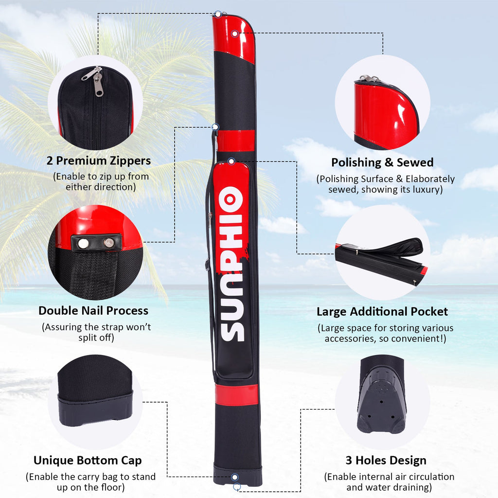 (portable) PREMIUM CARRY CASE & METAL SAND ANCHORS. Our beach umbrella comes with a large durable carry bag for travel. You won’t have a ripped strap issue that makes you difficult to carry! Besides, we offer 2 different metal sand anchors that satisfy your needs on various occasions, such as beach, lawn, camping, picnic, fishing, and sport areas.